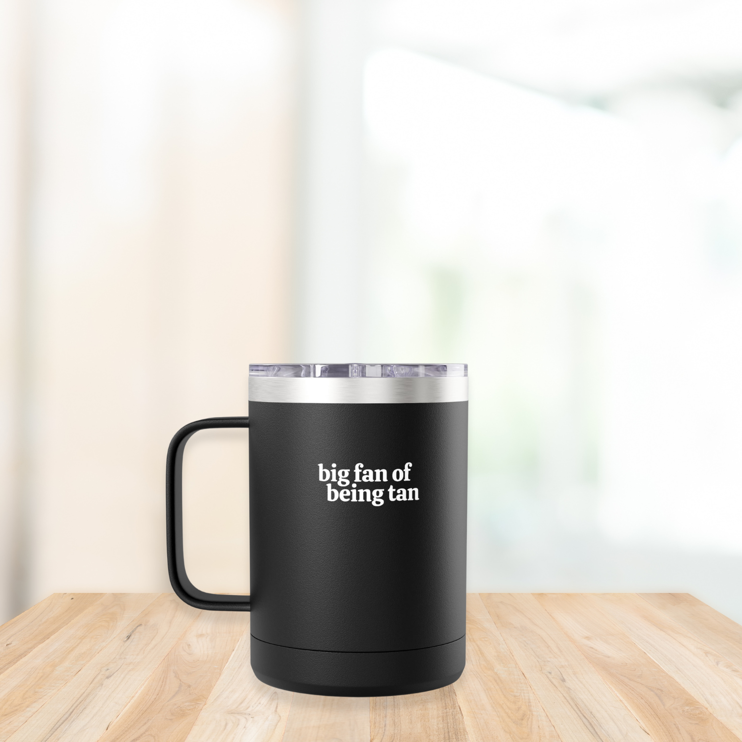 ☀️ “Big Fan of Being Tan” design = sunny, confident energy with every sip